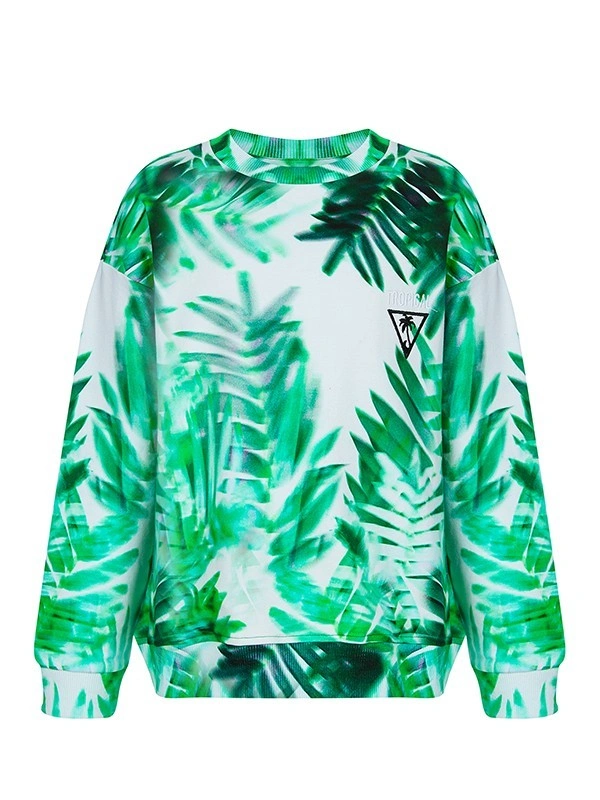 Свитшот ALESSANDRO BORELLI для мальчика идеально сочетается как с другими моделями из коллекции Tropical, так и с базовыми джинсами или шортами. Модель свободного кроя с круглым вырезом горловины, манжетами на рукавах и планкой по низу выполнена в стиле casual. Основу дизайна составляет насыщенный зелёный узор с пальмовыми листьями, создающий атмосферу лета и отдыха. Приятная ткань с большим добавлением хлопка делает свитшот с длинным рукавом лучшим вариантом для любого сезона. Строго ухода он не требует: после стирки рисунок останется таким же ярким. В нем можно смело гулять, отдыхать или заниматься спортом.