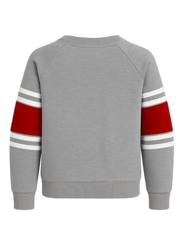 Свитшот для девочки Alessandro Borelli выполнен в стиле американского колледжа и сочетает комфорт с трендовым дизайном. Модель из качественной хлопковой ткани с начесом приятна к телу и обеспечивает свободу движений, а эластичные манжеты и низ изделия сохраняют форму при носке. Серый цвет гармонично дополнен контрастными красными и белыми полосами на рукавах, создающими эффект спортивной динамики. Спереди расположен крупный принт с буквой B и надписью Forever Borelli, подчёркивающий фирменный стиль бренда.