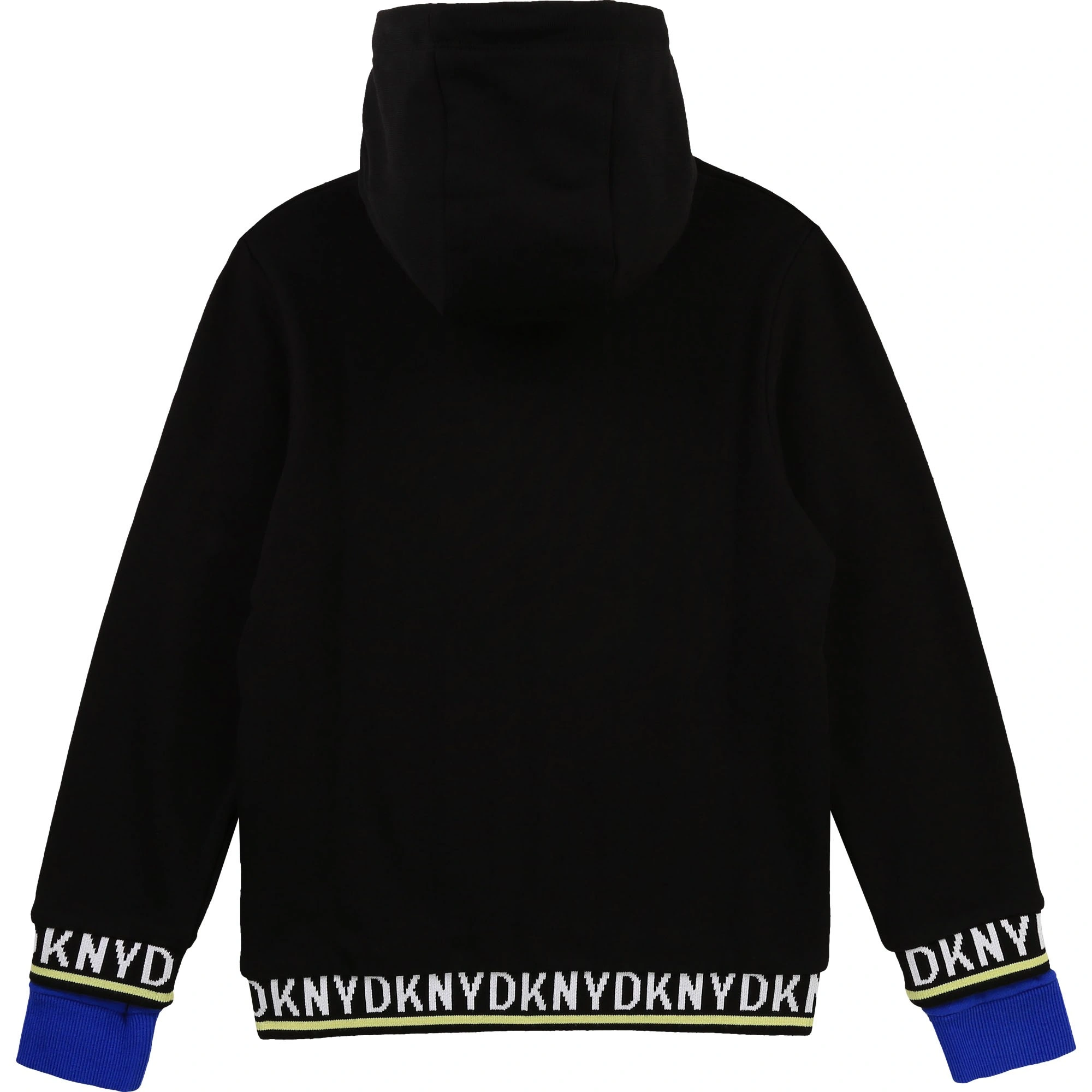 Принт с логотипом на груди, затягивающийся на шнурок капюшон, длинные рукава, застежка на молнии спереди, эластичный подол и прямой подол. Цвет: черный.
