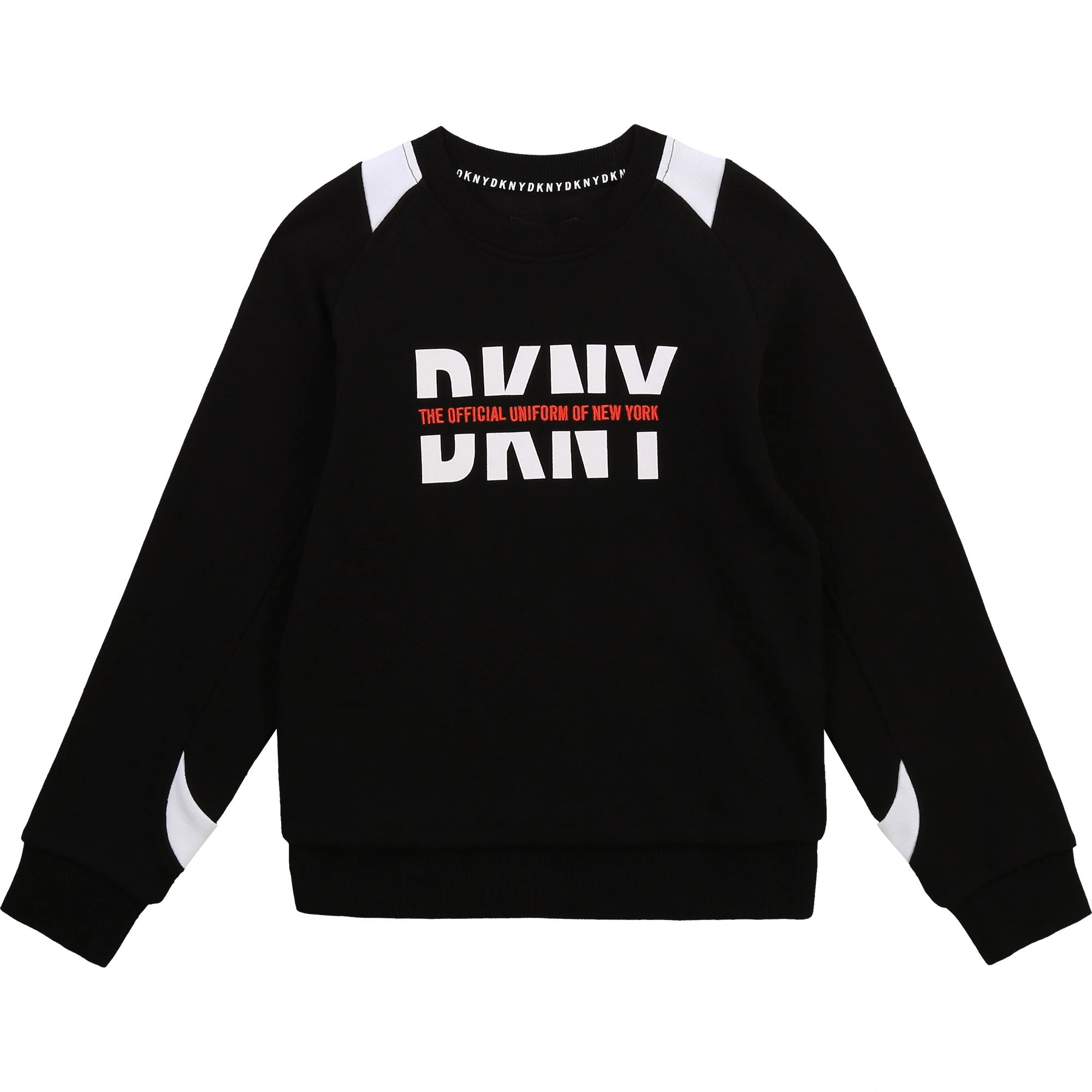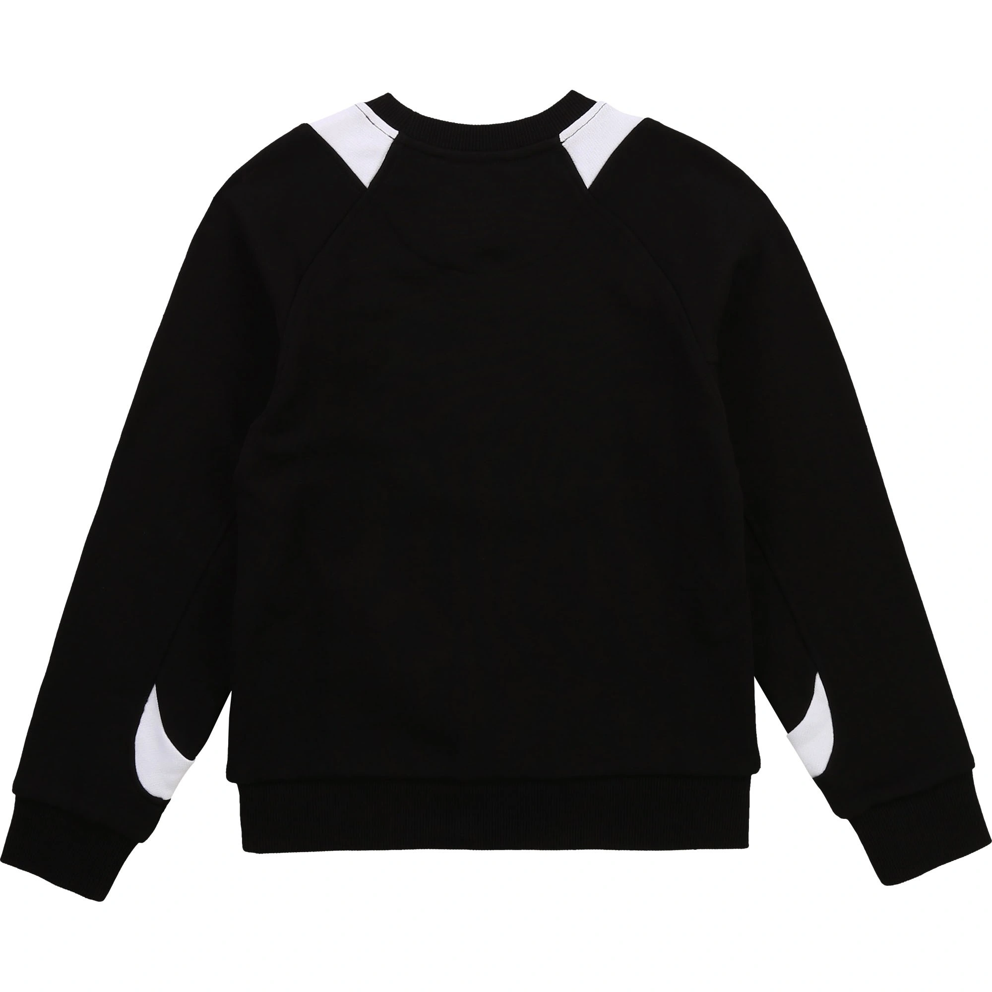 Принт с логотипом на груди, длинные рукава, манжеты в рубчик, подол в рубчик и круглый вырез. Цвет: черный.