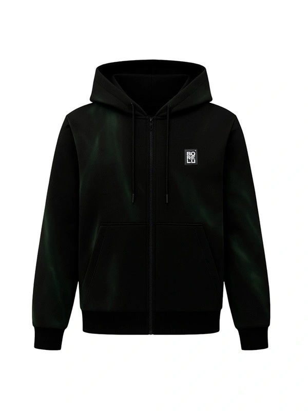 Толстовка для мальчика Alessandro Borelli — стильная и практичная модель в духе современного streetwear. Выполнена из качественной хлопковой ткани с небольшим добавлением полиэстера. Ткань сохраняет форму и цвет даже после многократных стирок. Глубокий чёрный цвет дополнен лёгким зелёным оттенком, создающим эффект дымки. Минималистичный логотип BORELLI на груди придаёт изделию аккуратный и узнаваемый фирменный акцент. Модель оснащена удобным капюшоном со шнурками, застёжкой-молнией по всей длине и накладными карманами.