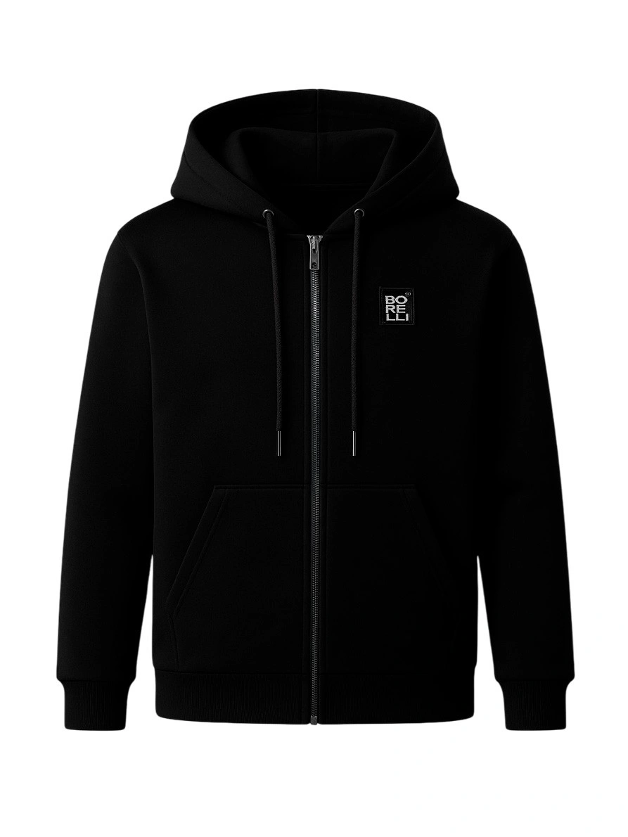 Толстовка для мальчика Alessandro Borelli — стильная базовая модель с акцентом на комфорт и лаконичный дизайн. Выполнена из мягкого трикотажа премиум-качества, обеспечивающим тепло и удобство в любую погоду. Глубокий чёрный цвет дополнен минималистичным логотипом BORELLI на груди, подчёркивающим современный и аккуратный стиль бренда. Толстовка оснащена удобной застёжкой-молнией, капюшоном со шнурками и вместительными накладными карманами.