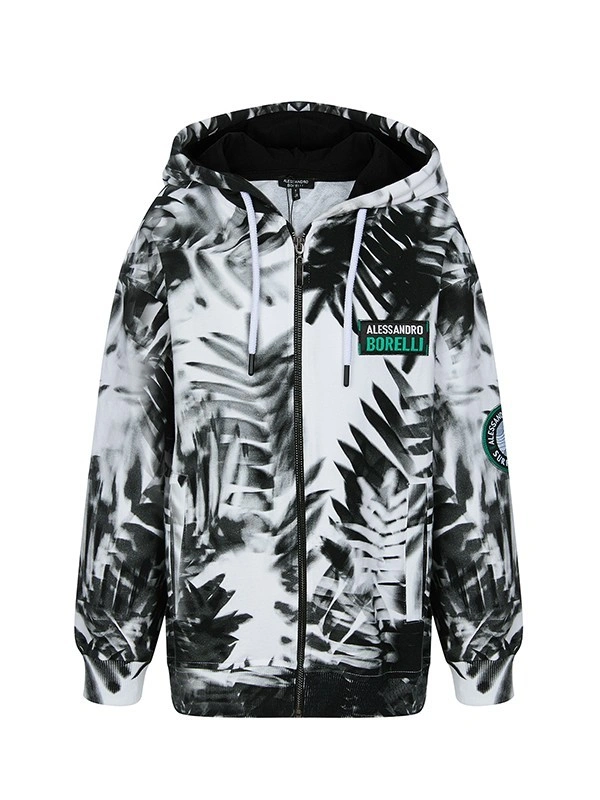 Толстовка ALESSANDRO BORELLI для мальчика идеально сочетаются как с другими позициями из коллекции Tropical, так и с любыми брюками или шортами. Модель обладает длинными рукавами, глубоким капюшоном, а также манжетами на рукавах и планкой по низу изделия. Основу дизайна составляет насыщенный абстрактный черно-белый принт в виде тропических листьев. Дополнительно модель украшена нашивкой с надписью Alessandro Borelli. Толстовка будет удобна для прогулок или занятий спортом. Худи выполнено из приятного к телу материала с большим добавлением хлопка. Модель для мальчика не боится частых стирок: ткань не выцветает и не заламывается. Хорошо подойдет для активного отдыха.