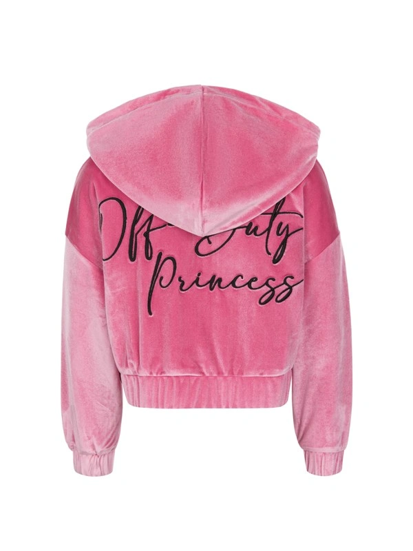 Толстовка ALESSANDRO BORELLI для девочек выполнена в стиле коллекции Ballet. Модель изготовлена из качественной бархатной ткани, которая идеально подходит для теплой весны или лета. Укороченная толстовка с длинными рукавами имеет глубокий капюшон, манжеты на рукавах, планку по низу изделия, а также застежку на молнию и карманы. Спинка изделия украшена элегантной надписью. Толстовка будет удобна для прогулок или занятий спортом. Худи не боится частых стирок: ткань не выцветает и не заламывается. Хорошо подойдет для активного отдыха.