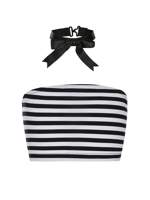 Топ ALESSANDRO BORELLI для девочки – идеальный выбор для вашего ребенка. Черно-белый укороченный топ в стиле бандо выполнен из хлопковой ткани с горизонтальными полосками, что добавляет образу свежести и динамики. Верх топа плотно прилегает к фигуре, что обеспечивает удобную посадку и свободу движений. В комплекте стильный черный чокер с атласным бантом, который дополняет модный образ и делает его более оригинальным. Такой топ отлично сочетается с шортами, юбками или джинсами, подходя как для повседневной носки, так и для особых случаев.