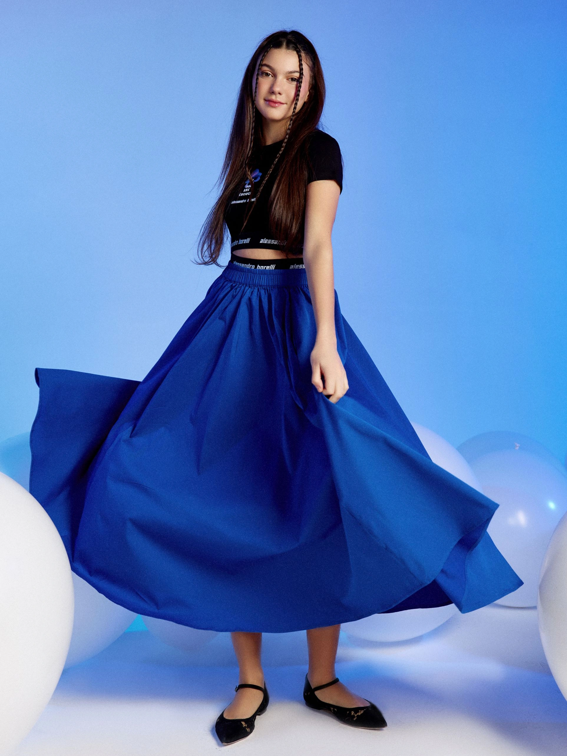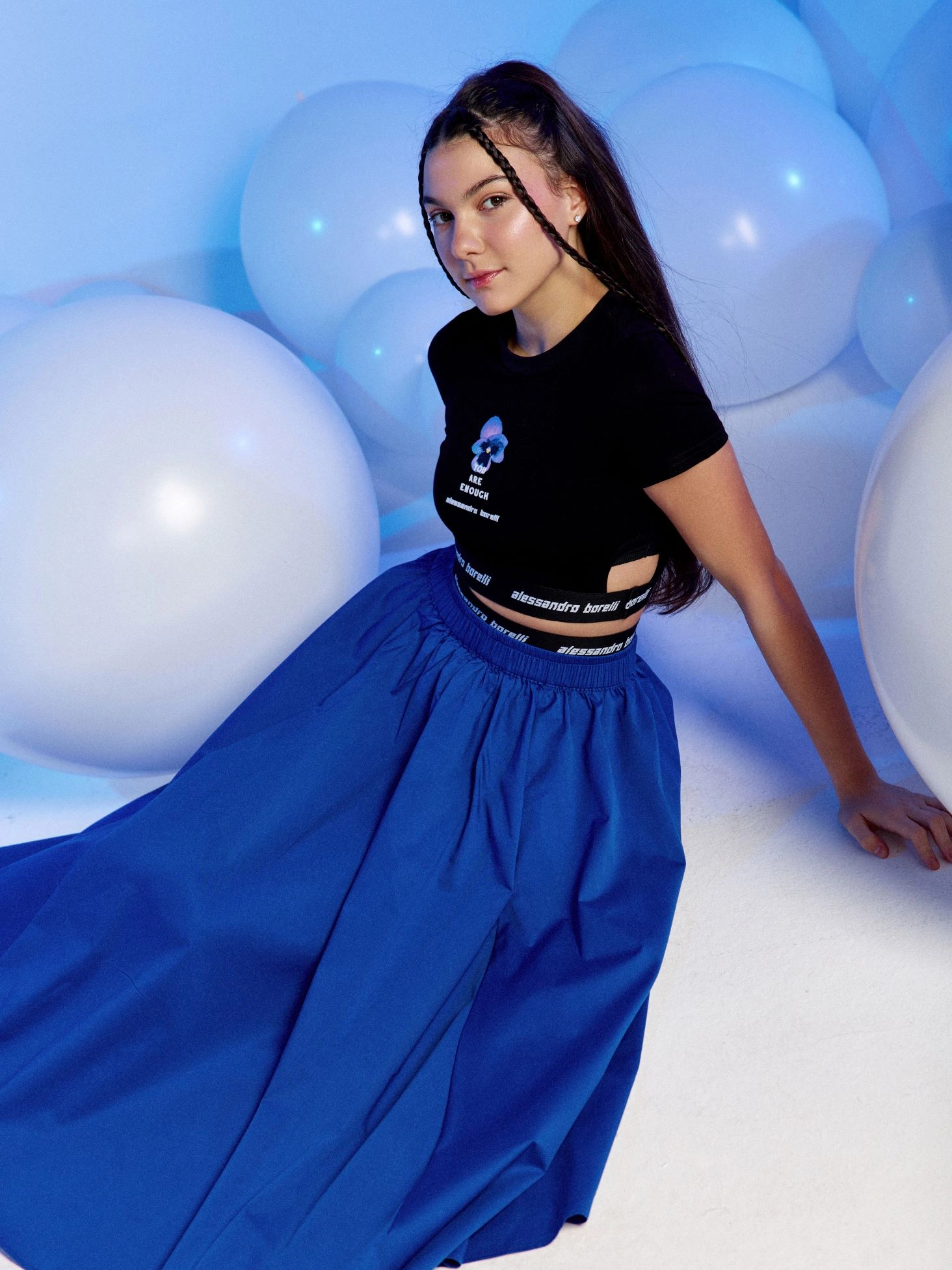 Топ ALESSANDRO BORELLI для девочек – лучший выбор для лета и теплой весны. На груди расположен яркий принт в виде фиалки, а также бархатные надписи "YOU ARE ENOUGH" и "alessandro borelli". По нижнему краю топа проходит чёрная резинка с белой надписью "alessandro borelli", выступающая элементом декора и дополнительной фиксации. Качественная мягкая ткань долго сохраняет свою яркость и не выцветает после стирки. Топ отлично подойдет для прогулок, отдыха или занятий спортом. Прекрасно сочетается с любой спортивной одеждой и другими моделями из коллекции.