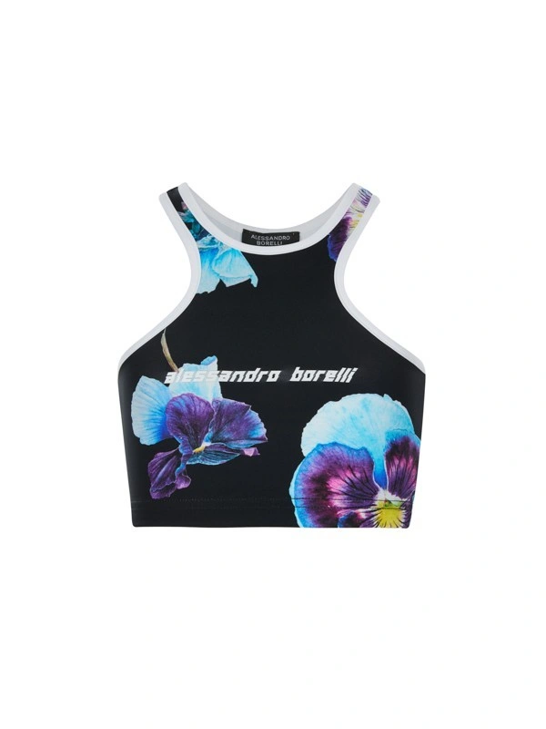 Топ ALESSANDRO BORELLI для девочек – лучший выбор для лета и теплой весны. Топ в черном цвете украшен ярким принтом в виде фиалок. На передней части расположена контрастная надпись "alessandro borelli". Данная модель привлечет внимание всех окружающих. Качественная эластичная ткань долго сохраняет свою яркость и не выцветает после стирки. Топ отлично подойдет для прогулок, отдыха или занятий спортом. Прекрасно сочетается с любой спортивной одеждой и другими моделями из коллекции.