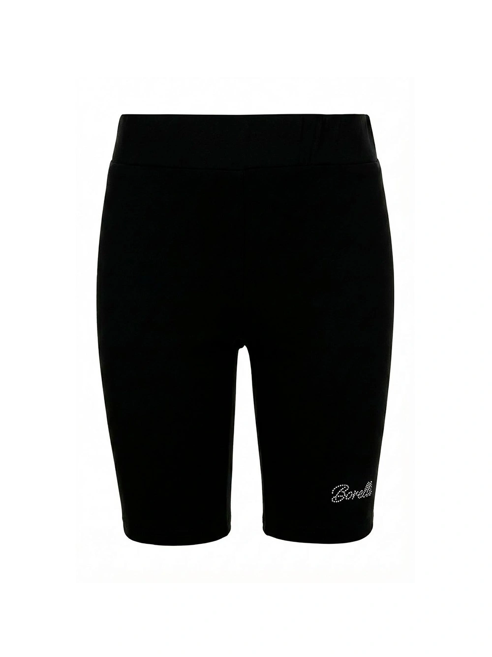 Черные велосипедки Borelli со стразами для девочек. Стильные велосипедки черного цвета выполнены из хлопкового трикотажа. Облегающая модель средней длины идеально подходит для спорта, танцев и повседневной носки. Широкий эластичный пояс обеспечивает комфортную посадку и надежную фиксацию. На бедре — элегантный декор в виде надписи Borelli, выложенной серебристыми стразами. Велосипедки – это практичный базовый элемент гардероба. Отлично сочетаются с футболками, топами и худи. Качественная ткань хорошо тянется, сохраняет форму и обеспечивает свободу движений.