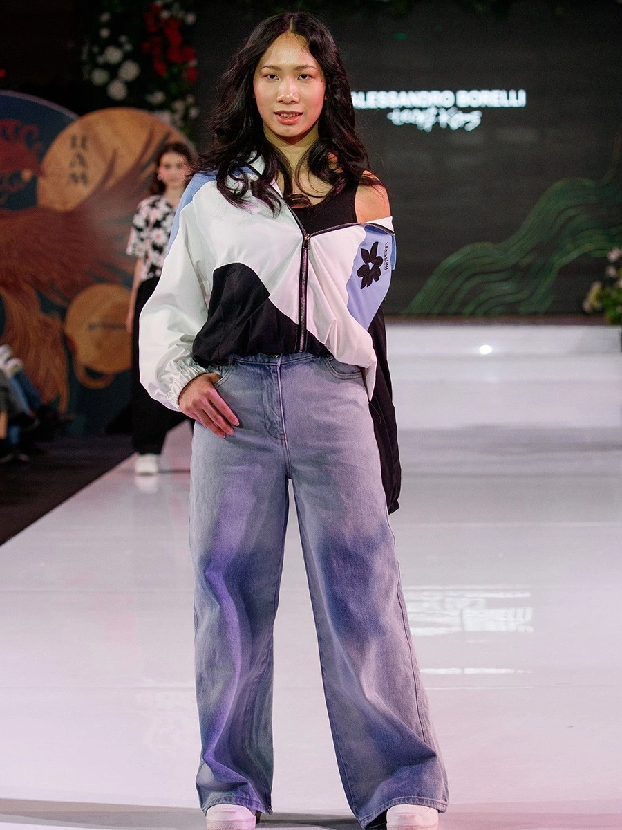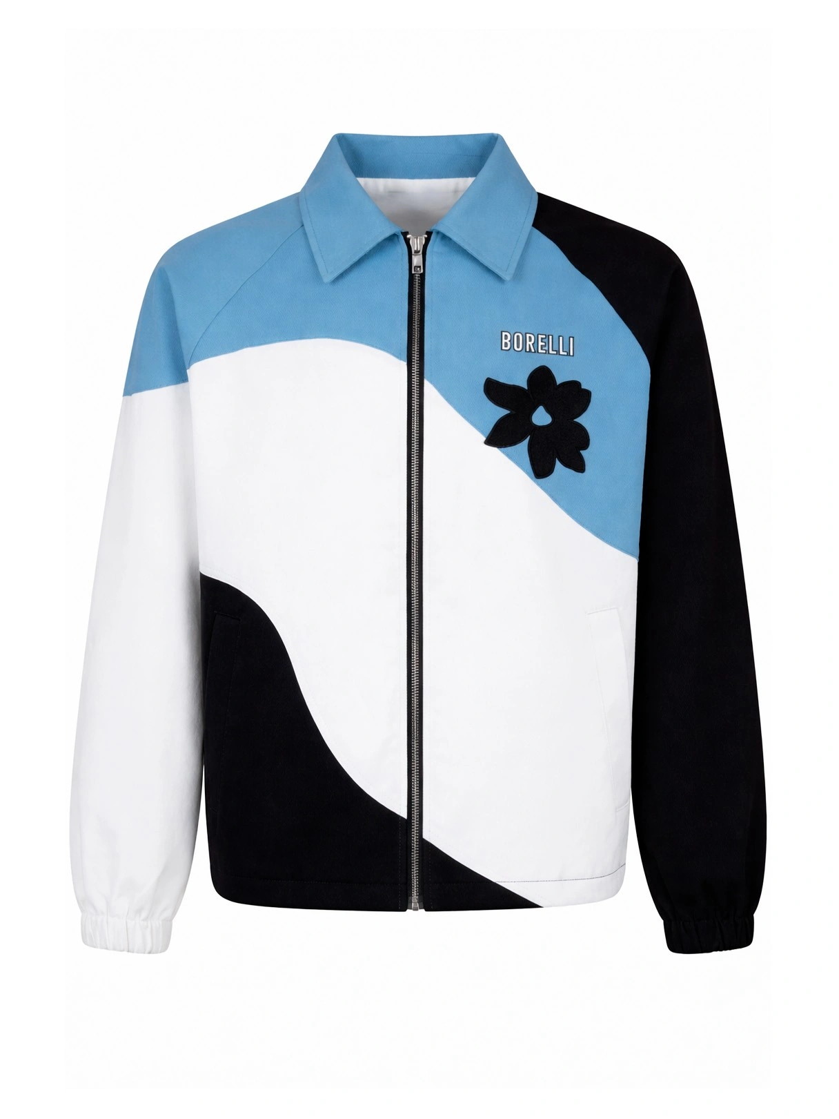 Трехцветный бомбер Borelli в стиле колор-блок для девочек. Стильная модель в технике колор-блок с эффектным сочетанием голубого, белого и черного цветов. Бомбер выполнен из легкой ткани с классическим отложным воротником и застежкой-молнией по центру. Асимметричный дизайн с крупными цветовыми блоками создает современный динамичный образ. На груди — декоративная аппликация в виде черного цветка с голубой серединкой и надпись бренда Borelli. Эластичные резинки на манжетах и по низу обеспечивают комфортную посадку. Практичные карманы спереди. Универсальная куртка для весенне-осеннего сезона, которая отлично сочетается с джинсами и юбками.