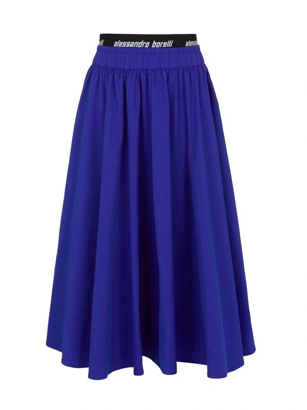 Юбка ALESSANDRO BORELLI для девочек выполнена в насыщенном синем цвете. Она имеет расклешённый фасон А-силуэта и изготовлена из лёгкой ткани, создающей мягкие складки. Верхняя часть юбки оснащена широкой эластичной резинкой чёрного цвета с белой надписью "alessandro borelli", что придаёт модели современный вид. Длина юбки — миди, это делает её универсальной для создания различных образов. Модель выполнена из качественной хлопковой ткани, благодаря этому за ней не нужен строгий уход. После стирки юбка не заминается и не теряет своей яркости. Юбка для девочки – идеальный вариант для лета и теплой весны. Высокое качество и стиль делают юбку лучшим выбором для долгих прогулок.