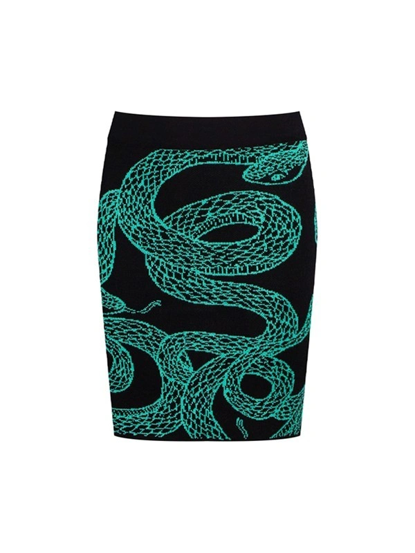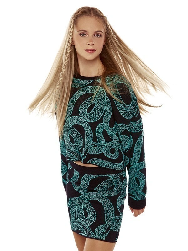 Юбка ALESSANDRO BORELLI в черном цвете украшена ярким бирюзовым принтом в виде змей, которые извиваются по всей поверхности ткани. Облегающая модель выполнена в стиле коллекции Snakes. Она привлечет внимание всех окружающих. Удобный пояс и высокая посадка придают юбке элегантность, делая ее подходящей для повседневного или вечернего выхода. Юбка выполнена из качественной трикотажной ткани с большим добавлением вискозы, не боится частых стирок и надолго сохранит яркость рисунка. Юбка подойдет для детей любого возраста: в нашем каталоге представлены модели для детей от 6 до 16 лет.