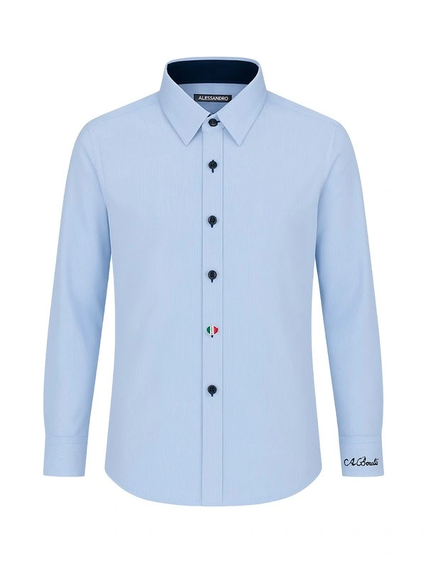 Рубашка ALESSANDRO BORELLI для мальчиков – идеальное решение для школьных будней. Прямая модель из гладкой классической ткани с длинным рукавом имеет отложной воротник, застежку на пуговицы, манжеты на рукавах, а также одна пуговица декорирована цветом итальянского флага – это символизирует, что дизайн модели был разработан в Италии. Сорочка для мальчика будет идеально сочетаться как с брюками, так и с жилетом или пиджаком. Рубашка выполнена из мягкой бамбуковой ткани, что позволяет с комфортом посещать занятия или торжественные мероприятия. За ей не нужно постоянно ухаживать, после стирки ткань не теряет форму и цвет.